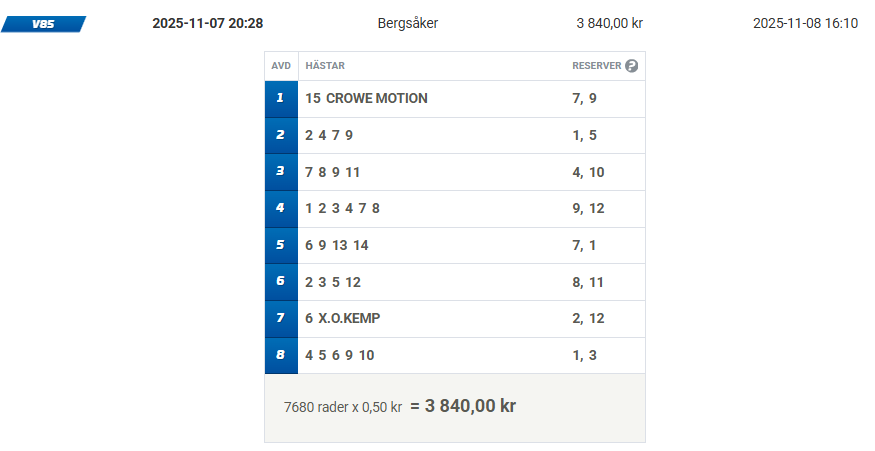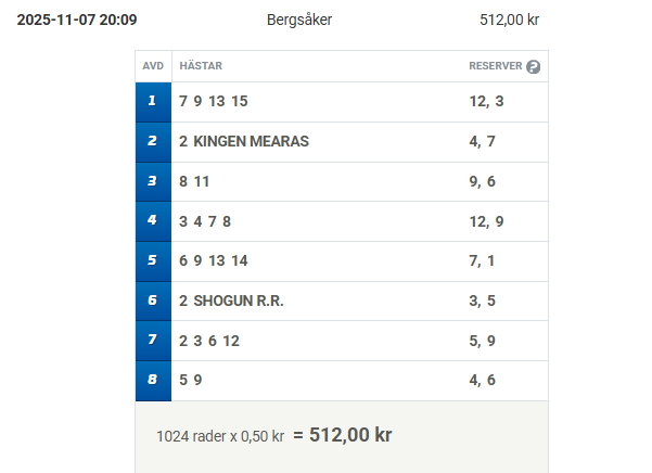 Aktuell spelomgång: V85 lördag 8 november Bergsåker - nu är vi tillbaka och ger det nya lördagsspelet en allvarlig chans! Jackpot 50 miljoner!