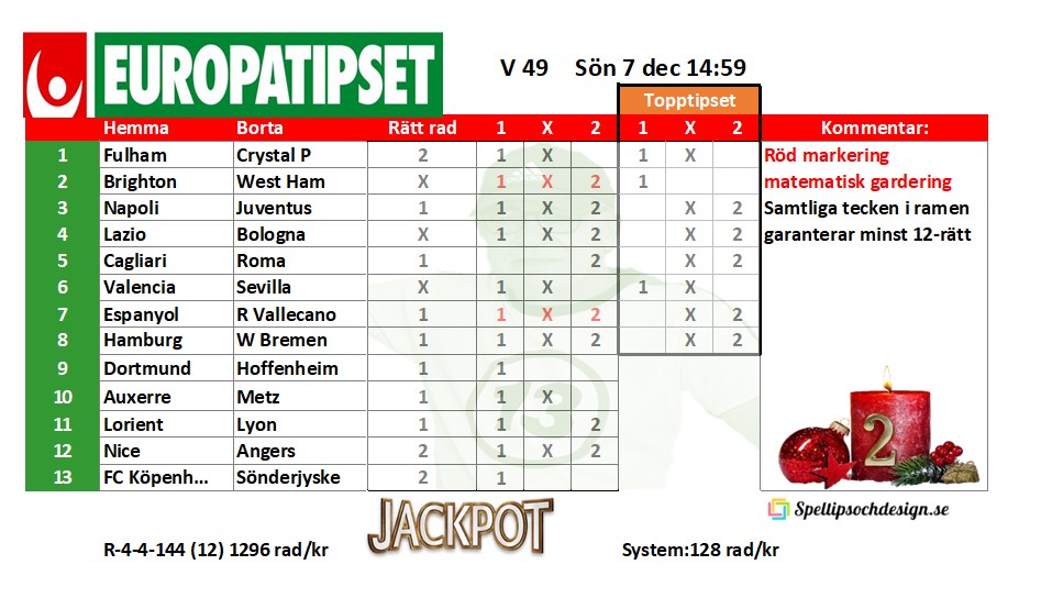 Europatipset Söndag 7 december