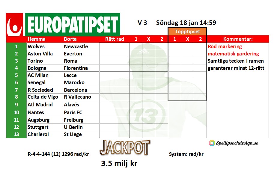 Vecka 3 Spelstopp: söndag 18 jan kl 14:59