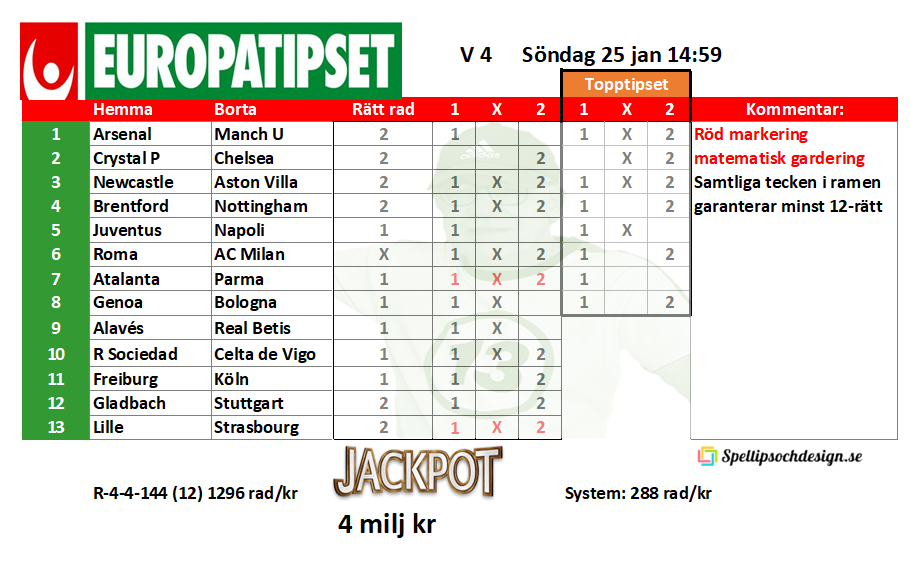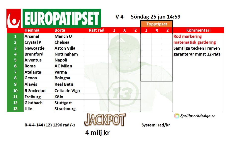 Europatipset söndag 25 januari
