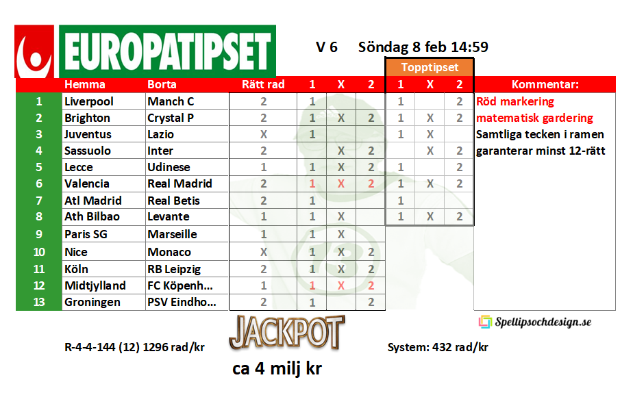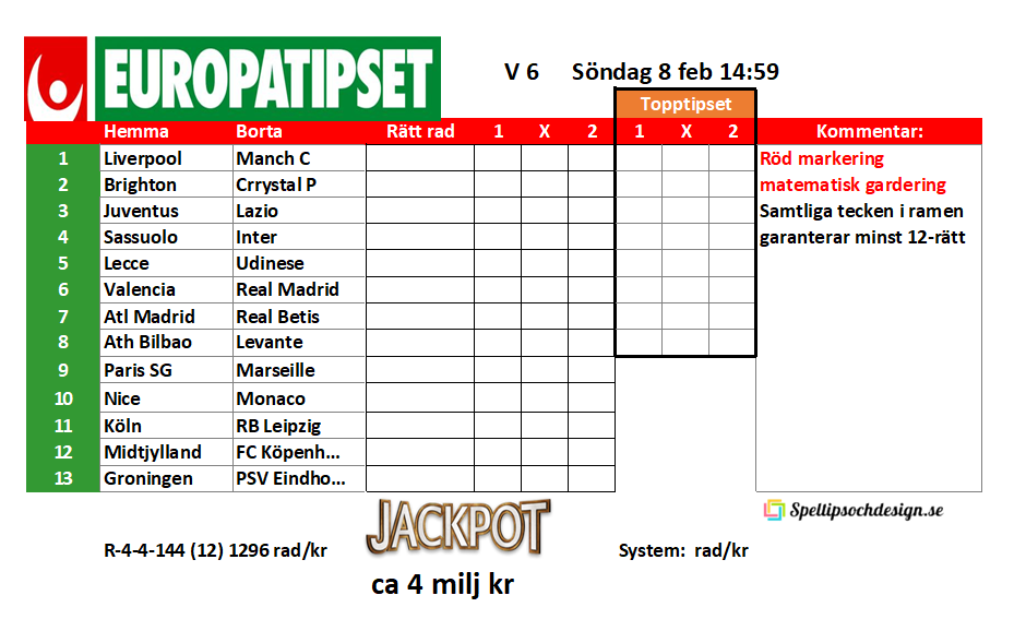 Europatipset söndag 8 feb 14:59