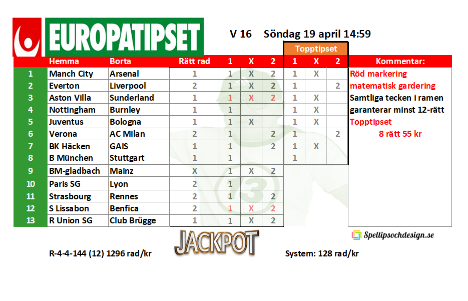 Europatipset söndag 19 april 14:59