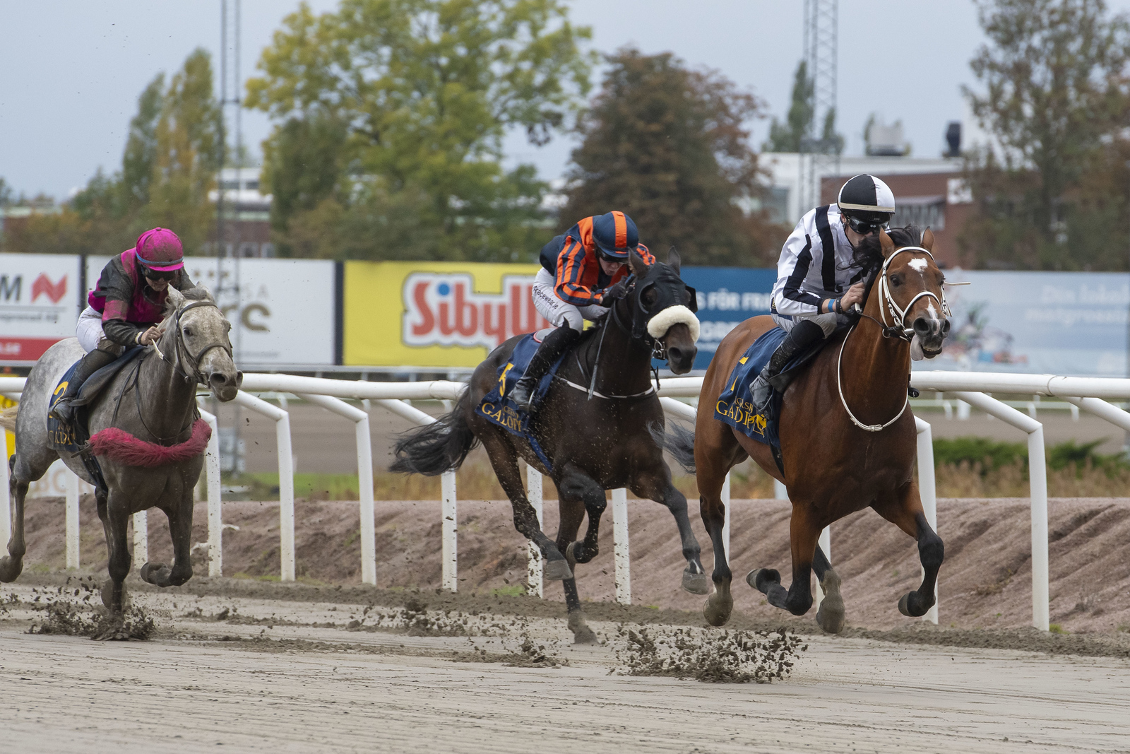 Kappuccino gjorde verkligen inte resan förgäves och spurtade till sig 2a platsen tillsammans med ryttaren Evelina Rönnlund efter att ha tuggat ner Tom Jakbar - endast besegrad av polske gästen Wasmy Al Khalediah som vann President Cup på Nationaldagsgaloppen.