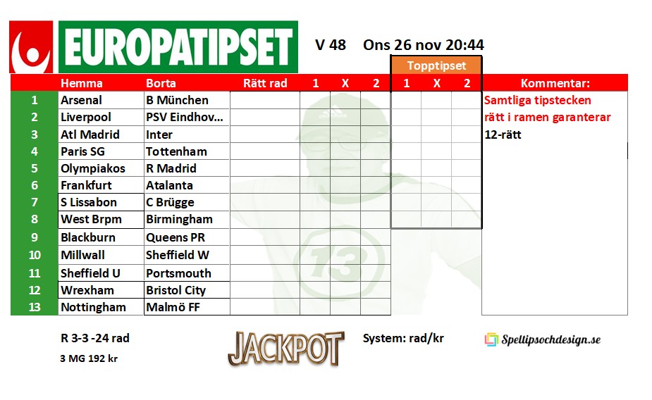 Bolagsspel - Europatipset Mitt i Veckan Bolaget R 3-3-24