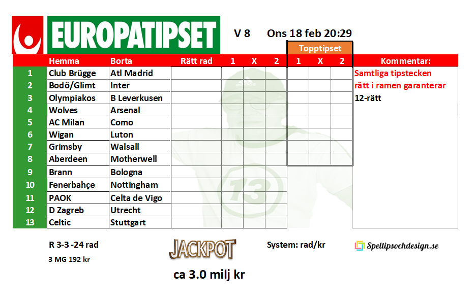 Europatipset onsdag 11 feb