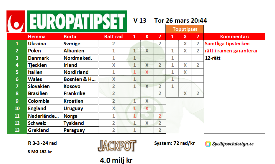 Europatipset 0nsdag 26/3