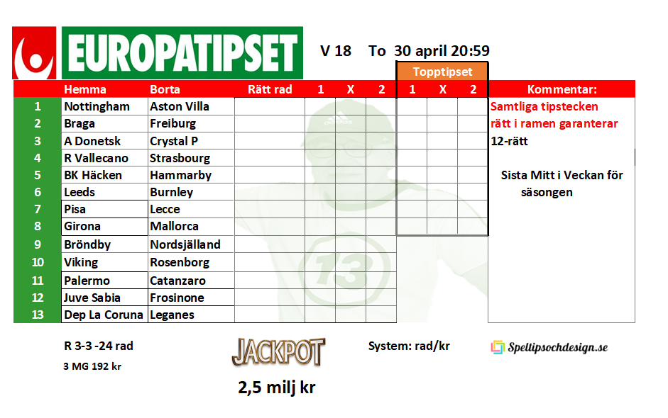 Europatipset onsdag 30 april