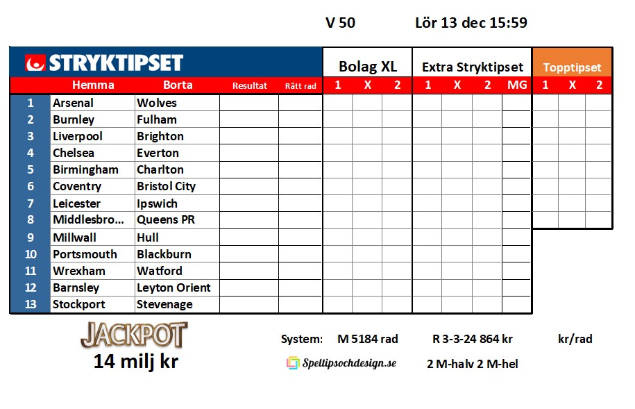 Stryktipset 13 dec 2025