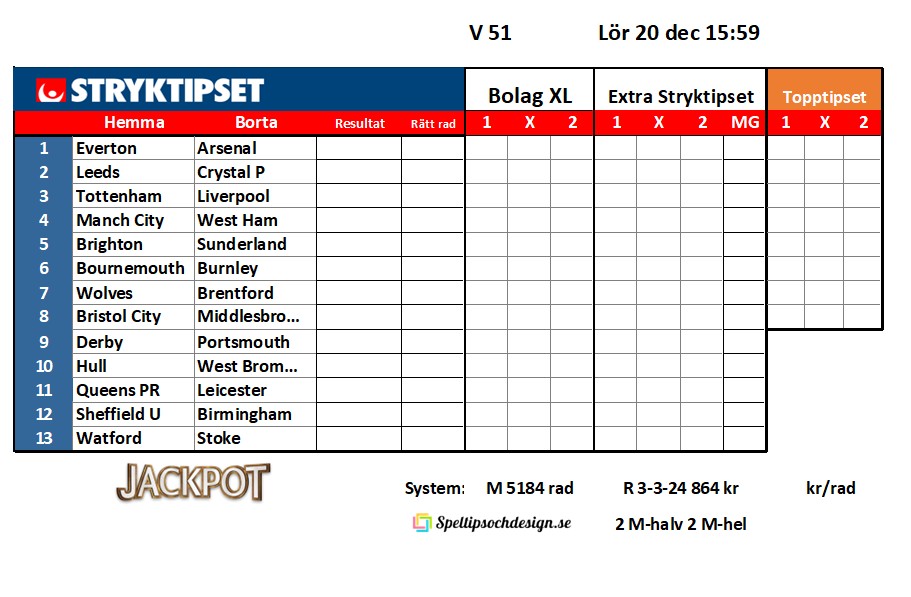 Vecka 51 Spelstopp: lördag 20 dec kl 15:59