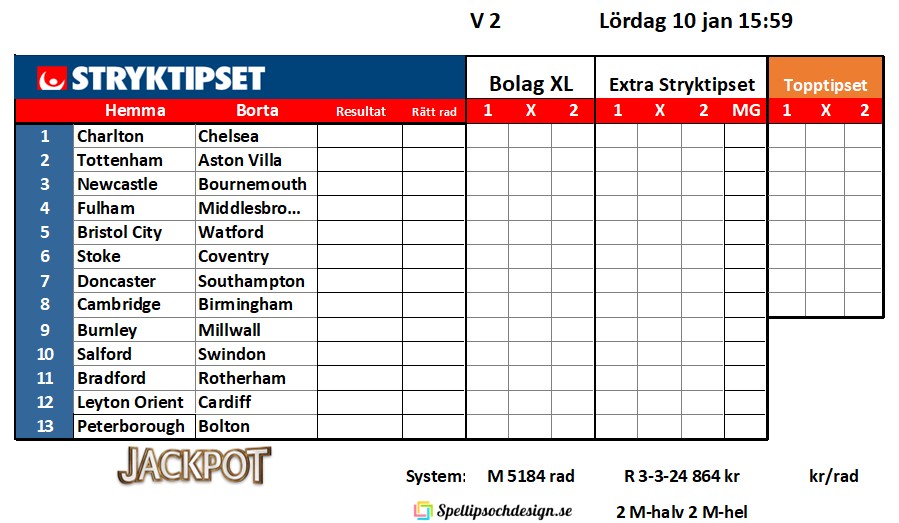 Vecka 2 Spelstopp: lördag 10 jan kl 15:59