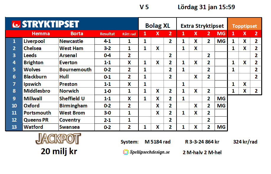 Stryktipset lördag 31 jan !