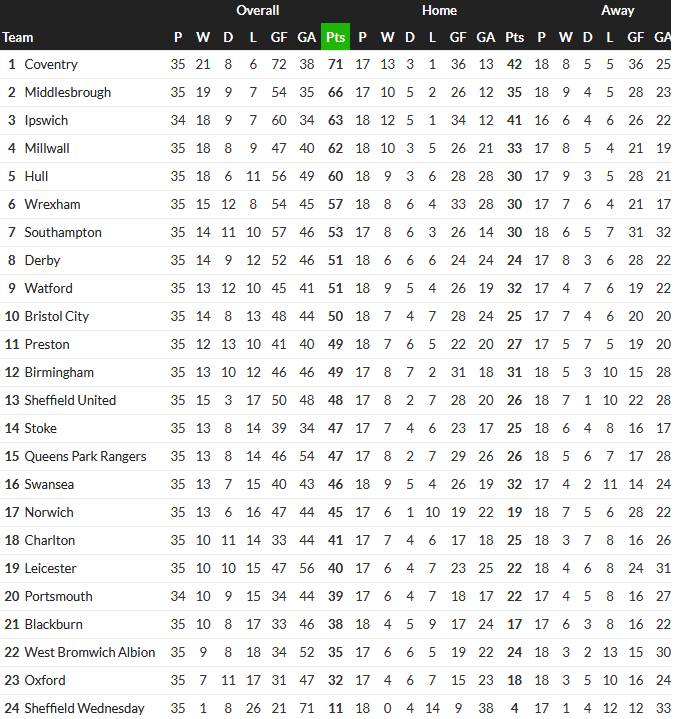 Ipswich kommer från en stark period med tre raka segrar, senast 1–0 mot Hull City. Laget har endast förlorat 2 av sina senaste 13 matcher och är särskilt svårslagna hemma på Portman Road (12 segrar på 18 hemmamatcher).