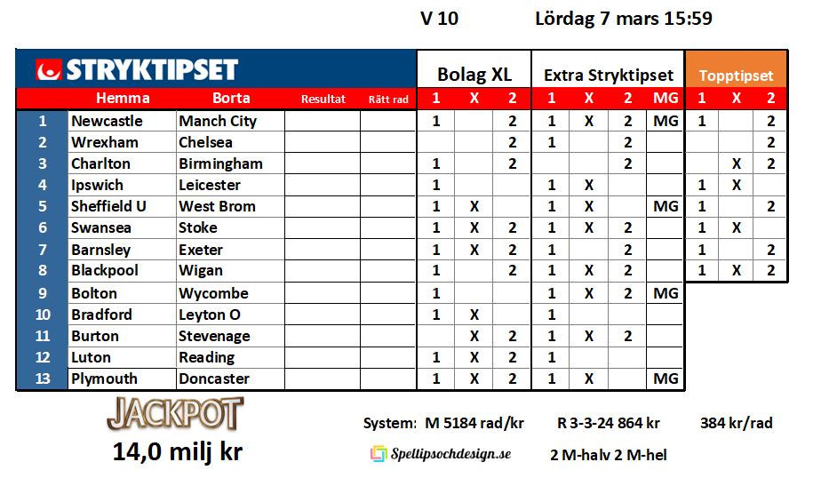 Stryktipset lördag 7 mars!