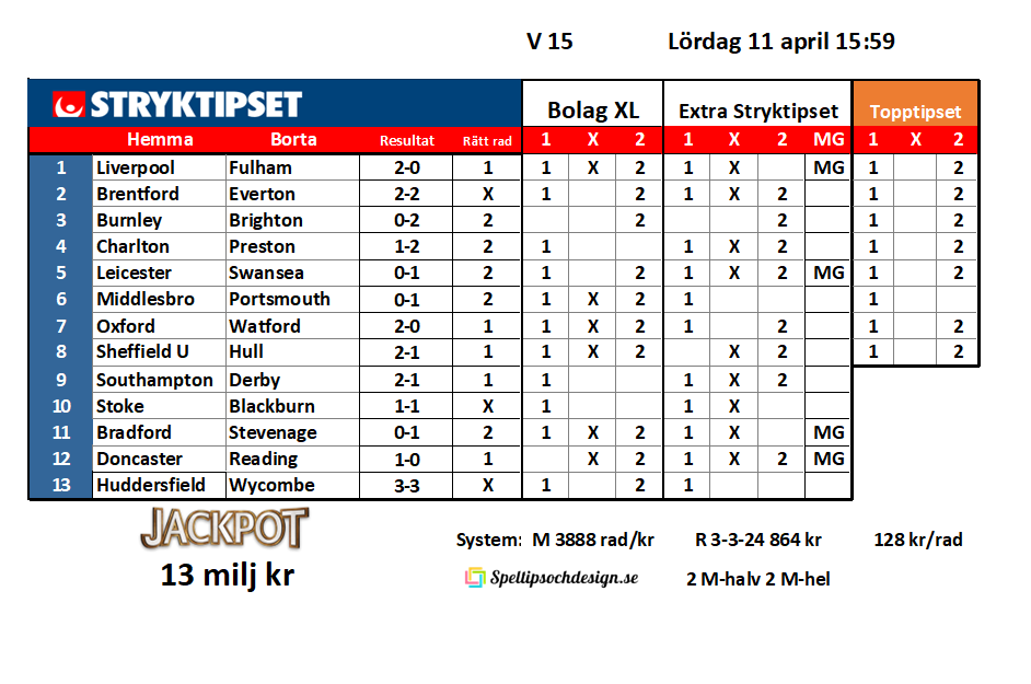 Stryktipset lördag 11 april!